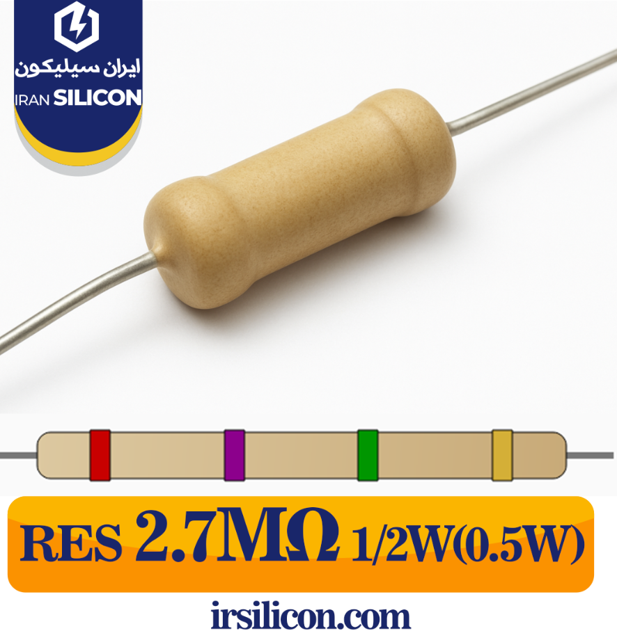 مقاومت 2.7 مگا اهم 1/2 وات (0.5 وات) 5 درصدتماس بگیرید