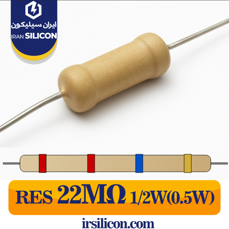 مقاومت 22 مگا اهم 1/2 وات (0.5 وات) 5 درصدتماس بگیرید