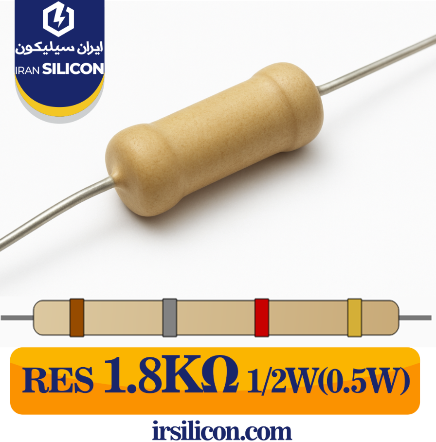 مقاومت 1.8 کیلو اهم 1/2 وات (0.5 وات) 5 درصد